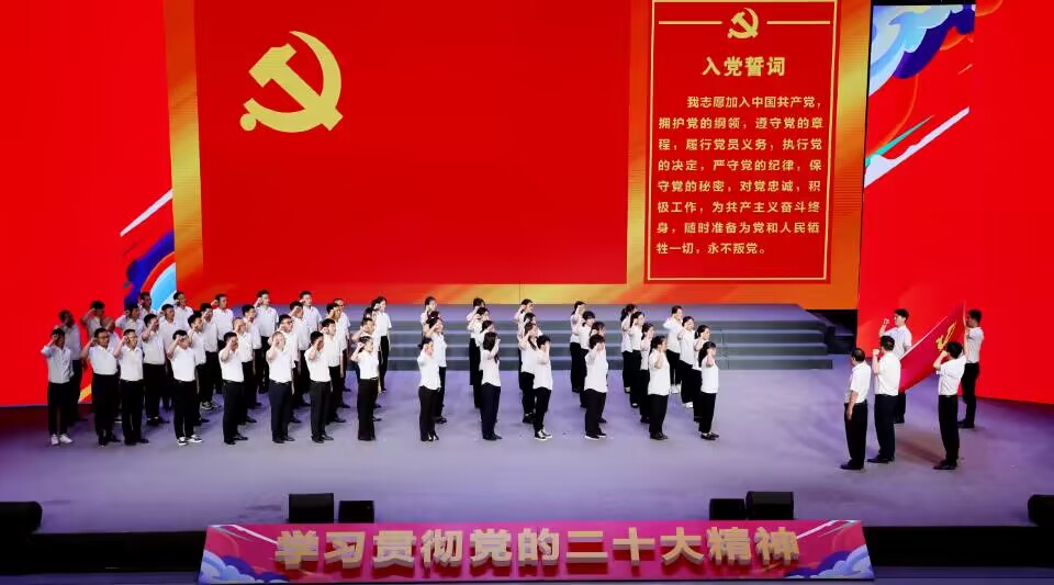 活动中还组织了新党员集体宣誓,对集团先进典型事迹进行展播。庆祝活动在全场合唱《没有共产党就没有新中国》的歌声中落下帷幕。