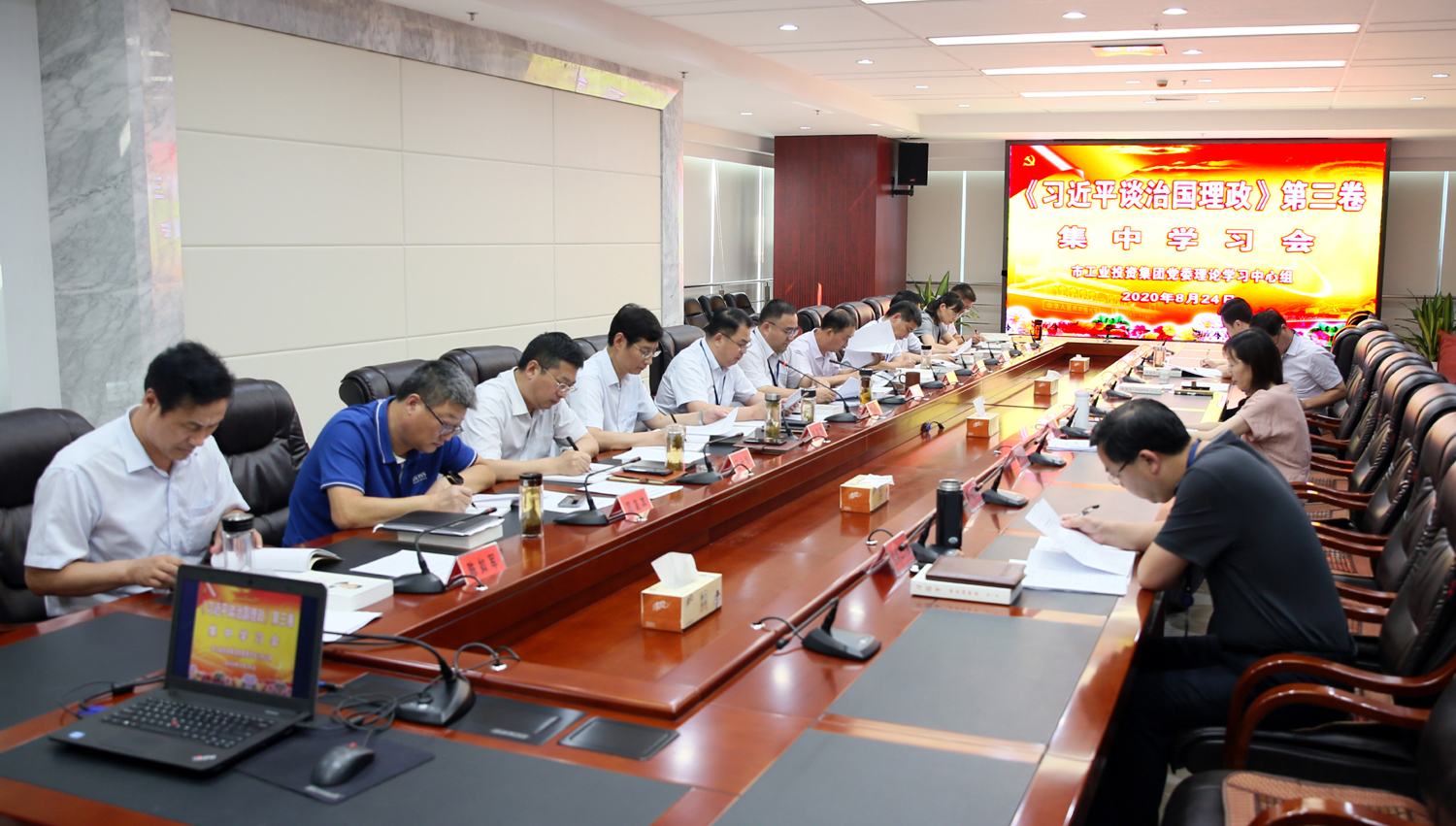 8月24日,集团公司党委理论学习中心组召开集中学习会,专题学习《习近平谈治国理政》第三卷。党委书记、董事长杨龙主持学习会。