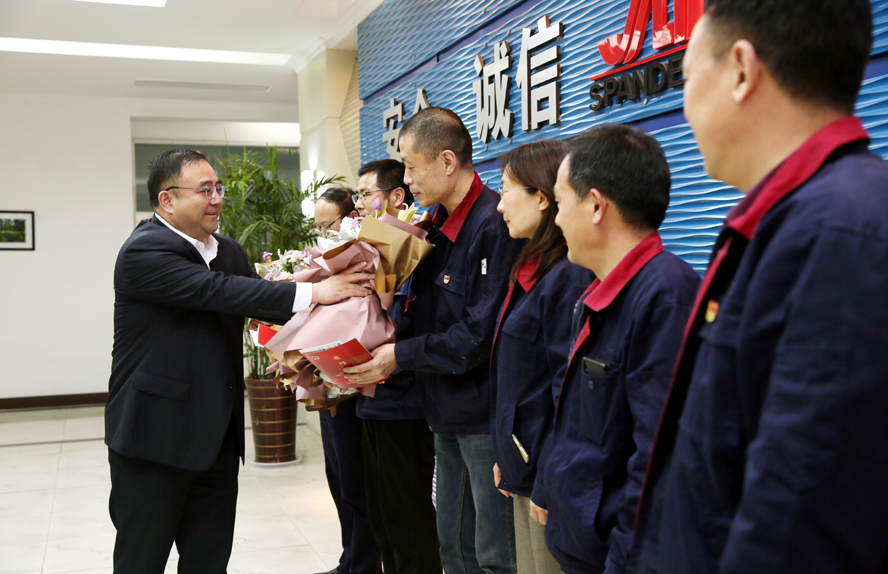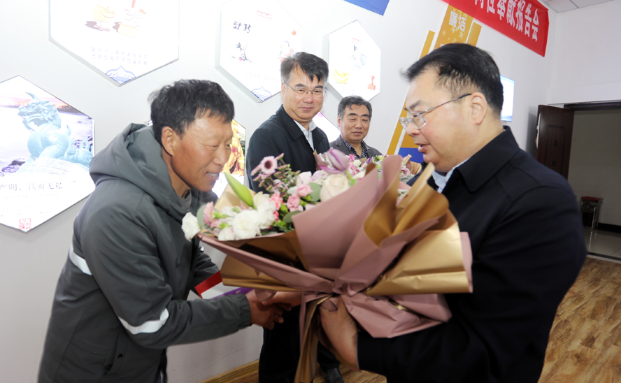集团公司领导进基层、到一线,与劳模先进面对面交流,倾听他们的心声和意见,感谢他们长期以来为企业发展作出的贡献,并献上一束鲜花、送上一封慰问信、发放一张蛋糕卡、特制一张健康卡、送上一份祝福。