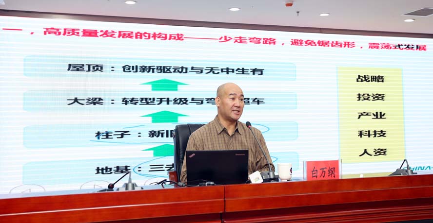 本次培训班邀请上海华彩咨询集团总裁白万纲博士、副总裁江斐围绕“高质量发展导向下的企业改革与企业管理”、“新常态背景下的集团型企业的资本运作”作了专题辅导培训。两位专家学者结合工投集团实际,理论与实践相结合,运用大量翔实的数据和实例,祥细阐述和解读了在高质量和新常态的发展大势下,国有企业跨越发展与改革管理、资本运作三者之间的紧密联系,主题鲜明、内涵丰富,具有很强的针对性、前瞻性和指导性。