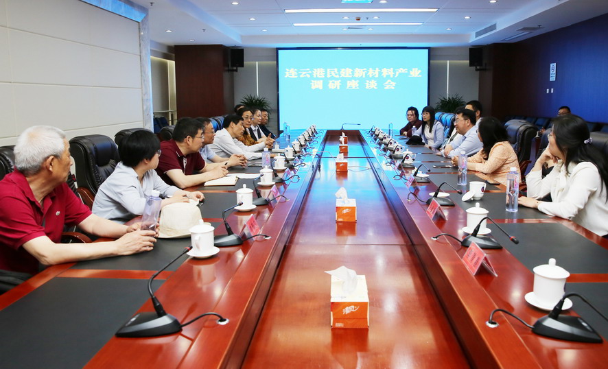 5月18日下午,民建连云港市委员会主任委员朱振亚、副主委张克勤、李开国带领市政协民建界别委员,来集团专题调研新材料产业发展情况。集团公司总经理胡建明、党委副书记戴鸿鸣陪同。