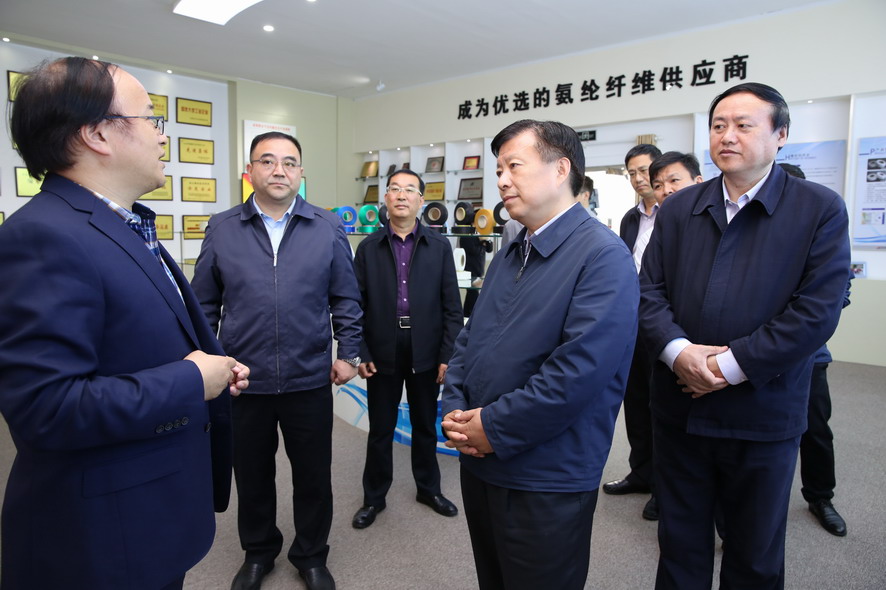 调研中,方伟一行先后实地察看了氯碱公司中控室和电解槽生产现场、氨纶公司七期生产线、八期建设现场,详细了解化工生产、精细化管理、市场开发及工程项目建设等情况。