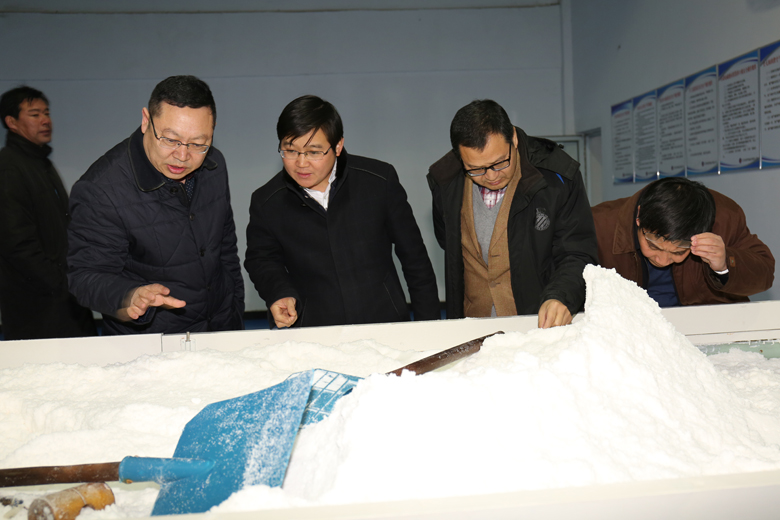 2月7日下午,江苏省盐业集团副总经理郑海龙一行在集团公司副总经理杨国新陪同下到金桥制盐公司调研考察。郑总一行先后参观了该公司雪花盐车间、加工盐车间、包装盐车间,对该公司生产环境、硬件设施、车间布局、生产工艺等给予了充分肯定。随后,双方围绕产品结构、价格调控、渠道建设等内容展开讨论,并就2018年的合作事宜进行了洽谈。
