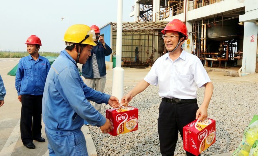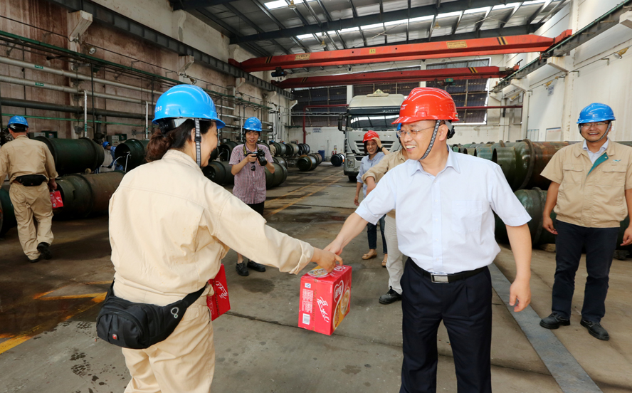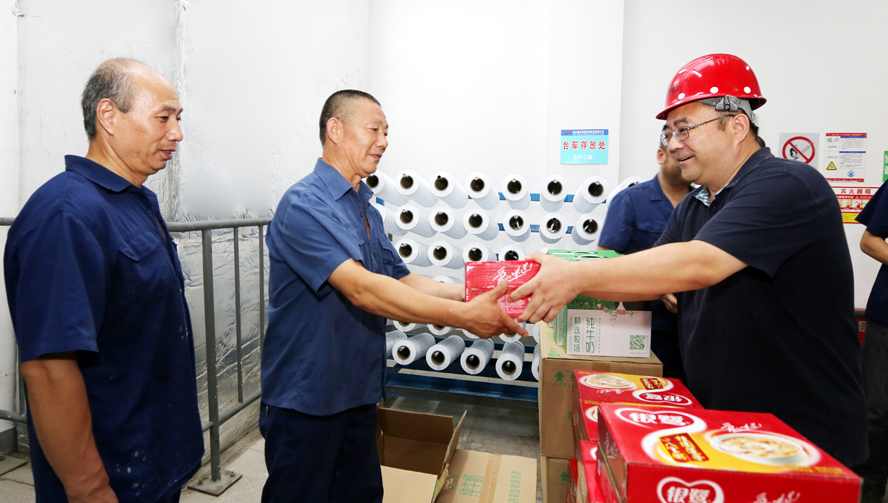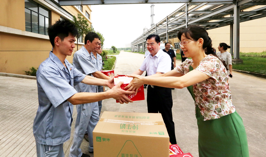 炎炎夏日送清凉,点滴关爱暖人心。连日来,骄阳似火,酷暑难耐。7月18-20日,集团公司领导杨龙、胡建明、张其海、朱天松、戴鸿鸣、汪群、匡友本等轻车简从,分赴基层一线,进车间、入工地、到滩(田)头,慰问在高温下坚守岗位的广大员工,送去绿豆、白糖等防暑降温品,在炎炎夏日中将“清凉”送到职工心坎上。