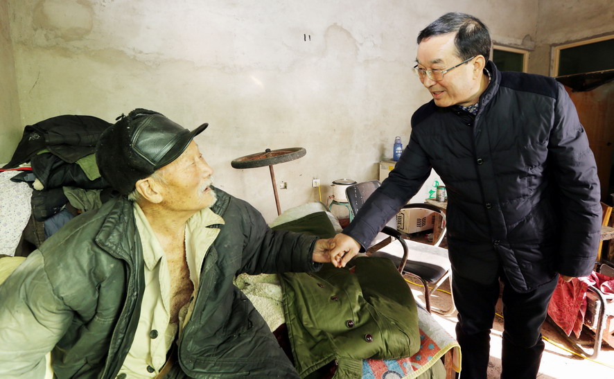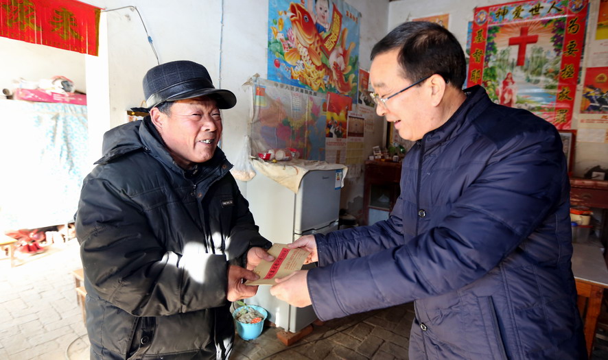 1月20日上午,集团公司总经理胡建明代表集团党委专门来到对口扶贫点,赣榆区沙河镇北朱果村走访慰问贫困户。在沙河镇人大主席曹军华的陪同下,胡建明共看望了十户贫困户,每到一家,都关切地询问他们生产生活状况和遇到的困难,勉励他们坚定信心,树立战胜困难的勇气,并为他们送去慰问金和节日的祝福。