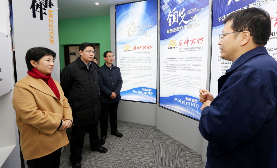 万闻华一行先后参观了奥神新材料公司展厅和生产车间,听取了该公司目前的发展情况汇报,详细了解高性能纤维产品的相关性能和发展前景,对该公司在纤维行业等方面取得的成绩给予充分肯定。万闻华希望奥神新材料公司要进一步突出“高、新、优”特色,不断推动产业高端化、规模化、集聚化发展,为推动全市纤维新材料产业发展做出新的贡献。