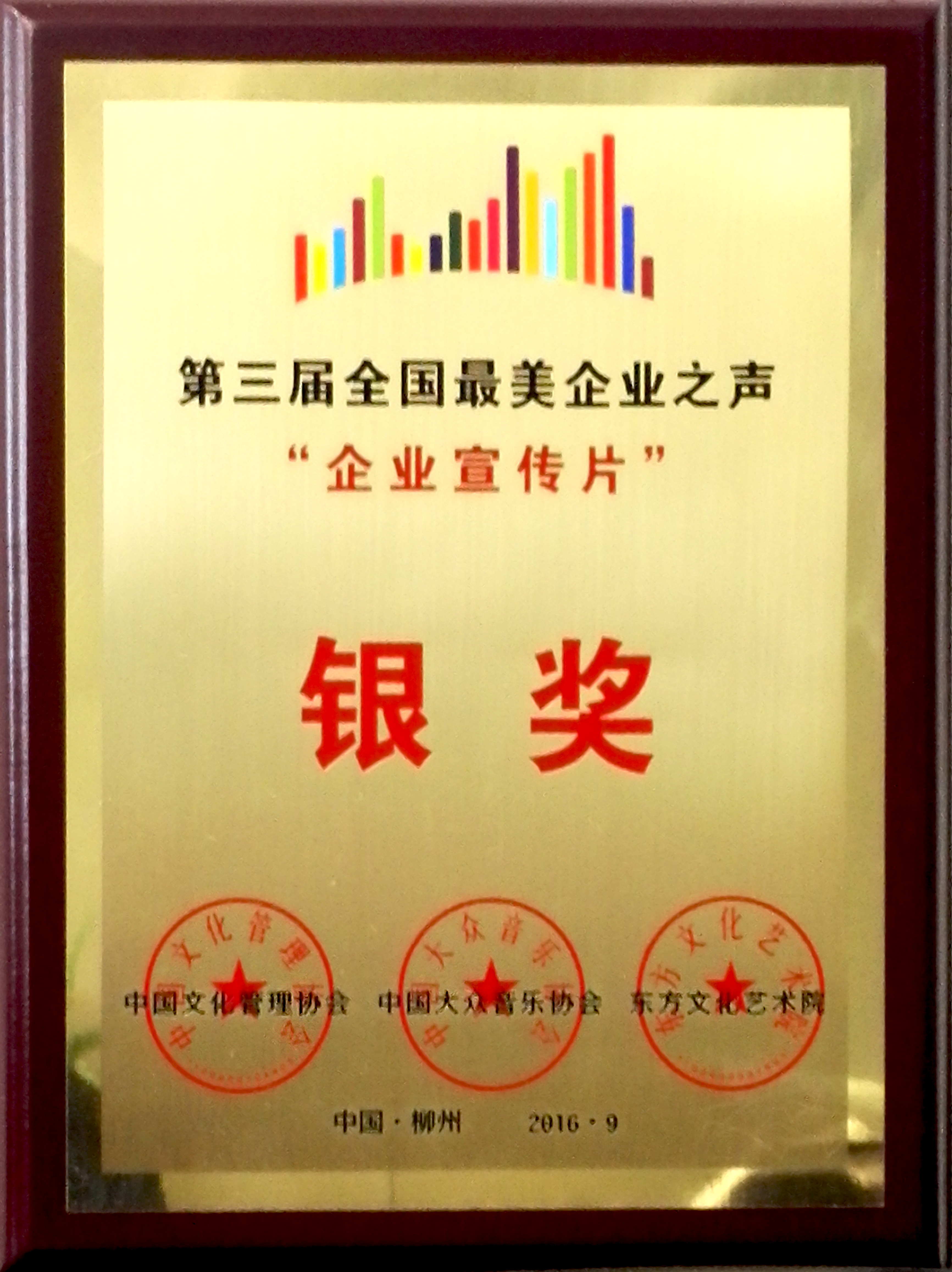 9月28日至29日,中国文化部直管的中国文化管理协会在柳州召开会议。会上,发布了“中国企业文化建设测评标准3.0”,对全国企业文化建设工作、企业歌曲、企业宣传片等方面的先进进行了表彰。集团公司获得“企业党建文化十强单位”,集团公司精心设计制作的企业宣传片《品质工业,精诚投资》,在全国选送参评的400余部宣传片中脱颖而出,获得银奖。
