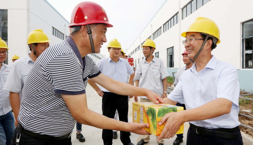 连日来,骄阳似火,酷暑难当。7月28日,集团公司杨龙、胡建明、杨国新、戴鸿鸣、匡友本、陈如军等领导分赴基层一线,进车间、入工地、到滩(田)头,慰问在高温下坚守岗位的一线员工,送去冰红茶、绿豆等防暑降温品,在炎炎夏日中将“清凉”送到职工心坎上。