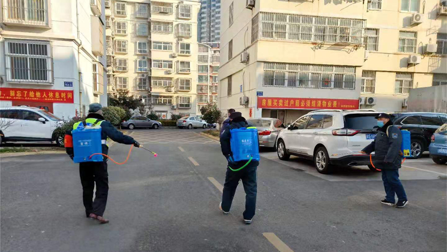明确工作重点,全面细致排查。每天两次对小区楼道、电梯、公共区域、建材车间进行消毒灭菌。在新城花园、金桥新村设置疫情防控点,对过往业主实行测量体温、外来人员登记、添加废弃口罩处置箱等。截止目前,已累计发放口罩1000余只,84消毒液100余瓶,消毒粉100余斤。