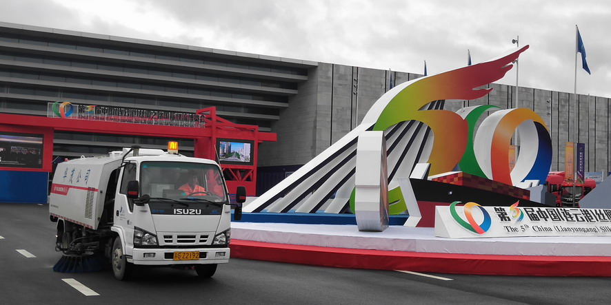 9月14日,连续忙碌了两个礼拜的职工们还没来得及休息,便又投入到“连博会”的准备工作中去。由于本届“连博会”共有来自27个国家和地区的420家企业参展,展览总面积达3.7万平方米,各家展商在布置展台时,各类生活垃圾、装修垃圾等一度将该公司布设的100多个垃圾桶都塞满了,在安排好人工清理的同时,该公司还安排垃圾清运车对积存垃圾进行清理清运,组织洒水车对会场及周边道路进行冲洗,一直到9月18日晚上9点左右才完成准备工作。19日“连博会”开幕当天,负责现场保洁工作的职工们早上6点多就赶到了会场,冒雨在会场周边开始忙碌,一台大型清扫车和一台洒水车也在会场旁随时待命。到了中午,当展商们在室内小憩的时候,室外的职工们为了不耽误事,站在风口匆匆地扒拉两口混杂着雨水的盒饭,就又投入到紧张的清理工作中去。仅19号开幕当天,累计清理各类垃圾7吨左右,为“连博会”的正常召开提供了一个干净、整洁的会场环境。