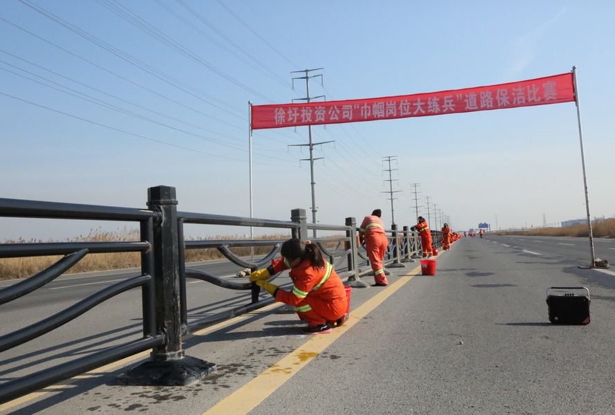 为庆祝“三八”国际妇女节成立109周年,提高女职工岗位建功水平,38日上午,徐圩投资公司在悦升公司道路保洁区域纵七路举行“巾帼岗位大练兵”活动。40名女工参加了道路护栏正反面清洗比赛。最终,龚飞、任礼勤、胡连云、杨守平等女职工分获一、二、三等奖。投资公司领导庄清付、梁永出席活动,并为获奖女职工颁奖。