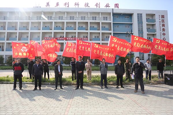 为进一步加强服务型党组织建设,引导和动员广大党员在企业创新创效行动中充分发挥先锋模范作用,日前,台北投资公司全体党员志愿者在美多利科技创业园内开展“践悟初心,锋领前行”党员义务奉献日活动。在授旗仪式上,全体党员还重温了入党誓词。