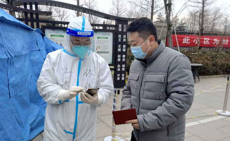 平时她只是居民小区里普通的一员,过着平凡的生活。但在这场没有硝烟的抗“疫”之战中,作为发展对象,她勇敢的站了出来,成为了疫情中的英勇战士。她就是商务部员工王曦。在做核酸检测信息采集时,王曦需要与医护人员一样,穿上厚重的防护服,装备齐全,完善自身防护,然后对每位待检人员进行手机扫描身份证登记。这项工作听起来简单,可干起来就不是那么容易了,注意力需要高度集中,扫描身份证后要进行信息核对,有缺失的信息需要补录,戴着手套的手戳起小小的手机屏幕根本就不是那么利索,需要反复多次才能完成采集。为了避免上厕所耽误工作,她忍住口干不喝水,保持扫码姿势基本不变,一天下来脱下防护服,里面的衣服早已被汗水湿透。当家人心疼的问她累不累的时候,她说:“我只是做了力所能及的事情,与其宅在家里,不如参加志愿服务,在这特殊时期尽自己的绵薄之力。”