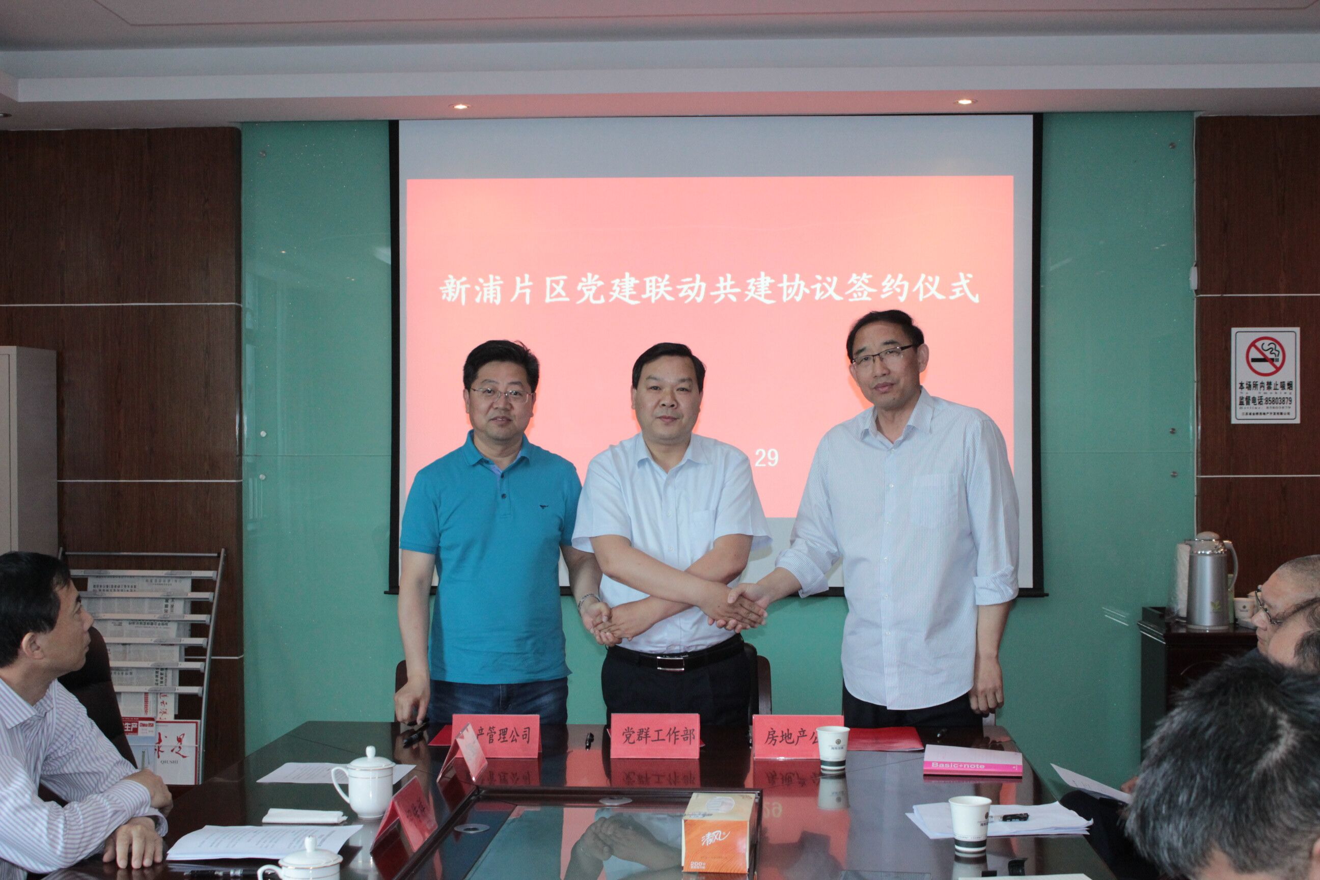 会上,金桥房地产公司党总支、资产管理公司党支部、供销公司党支部和金桥制盐包装公司党总支、供电公司巨龙市场党支部等单位按照“3+2”的模式,与集团公司党群工作部签订党建联动共建协议。与会人员集中学习了《中国共产党党员教育管理工作条例》,并围绕共建、共商、共享的原则,就如何开展好党建联动共建工作展开座谈交流。