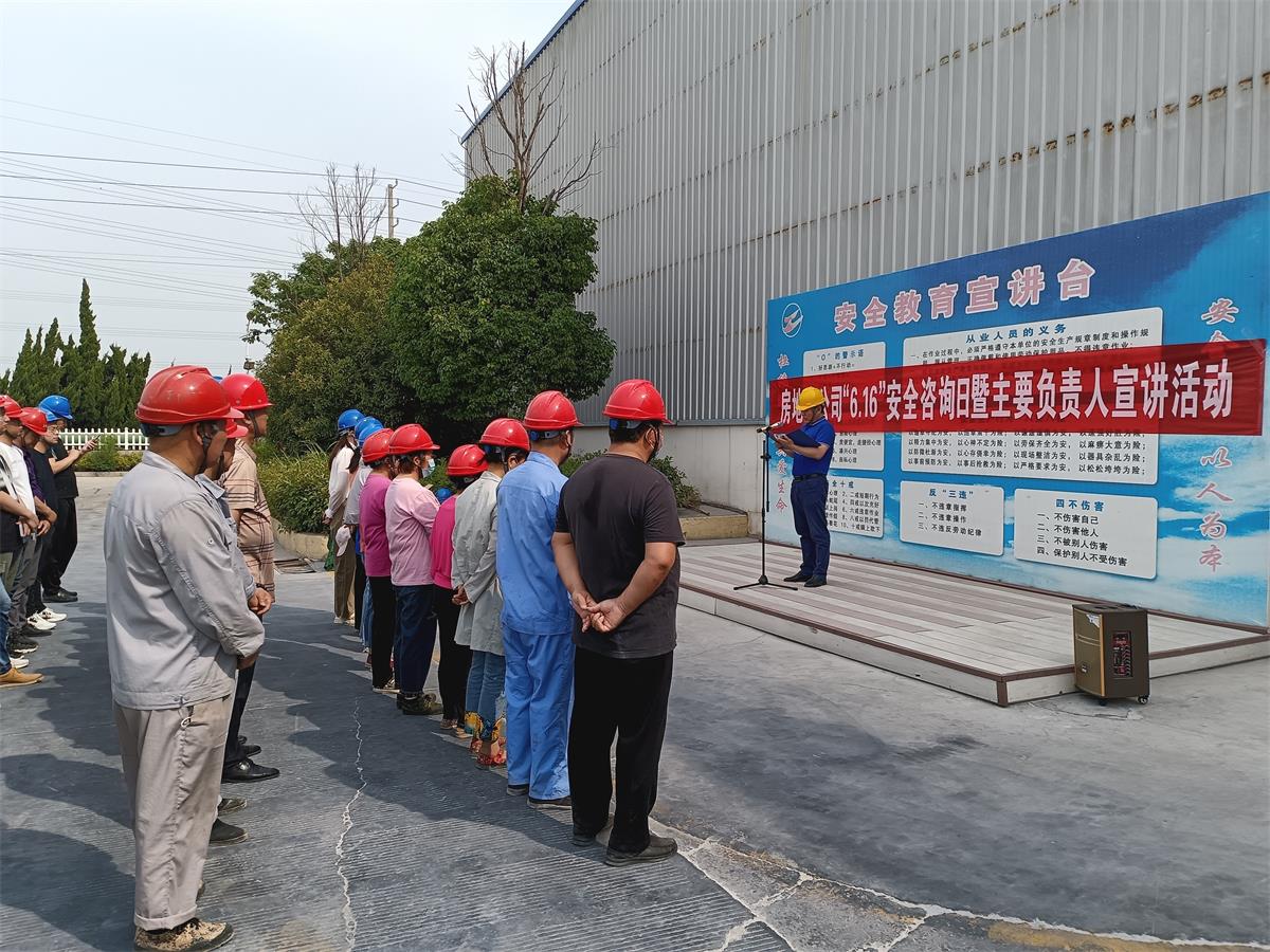 董事长陈青山针对生产场所作业特点,多角度宣讲了安全生产知识和事故危害的预防措施,警示员工不要违章操作、管理人员不要违章指挥,切实从安全发展出发,确保责任落实到部门、到班组、到岗位,保证“人人讲安全、个个会应急”。