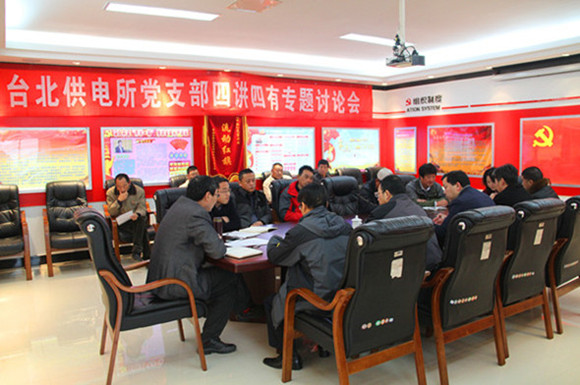 根据市委组织部统一部署,11月21日下午,台北供电所组织党员开展了以“做‘四讲四有’合格党员”为主题的大讨论活动。集团公司党群工作部副部长夏正斌一行、公司副书记王志军及相关部门人员参加会议。