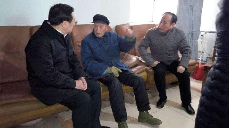 1 1月20日上午,省总工会副主席曹海(右一)、市总工会主席李强(左一)一行来到公司全国劳模、百岁老人郑有根家中走访慰问,不仅带去了慰问品和慰问金,也带去了党委、政府以及工会组织的问候和温暖。集团公司工会副主席李岚琴、公司党委书记、经理孙政权等陪同慰问。(司宣 司工)
