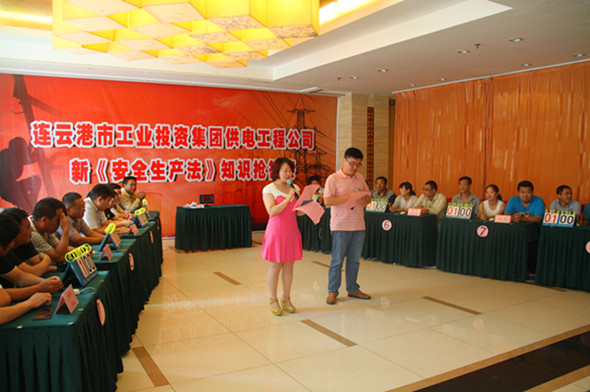 为了增强企业员工的安全意识,强化安全生产依法治理。近日,公司在淮盐大酒店举行安全知识抢答赛。来自该公司机关及各单位的8支代表队共24名选手参加了比赛。