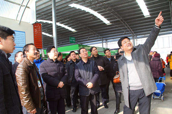 2月14日上午,市长赵晓江率市商务局、市物价局、市卫生局等相关部门负责人,到公司巨龙市场调研节日期间市场供应等工作。集团公司总经理胡建明、园区事业部总监赵万明、公司经理陈雨华及相关人员陪同调研。