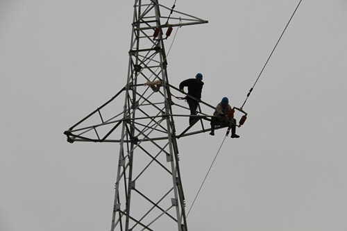 4月15日下午,随着35KV东管线改造的第一根导线顺利装设,标志着我公司输配电施工水平又迈上了一个新的台阶。 35KV东管线改造工程是我公司为解决徐南公司生产经营和居民生活用电紧张而实施的一项便民工程,技术要求高,施工难度大。为此,公司领导高度重视,从各供电所挑选精兵强将,组织了40余人的施工队伍,公司副书记、副经理卢明生、副经理袁庆国亲临现场,指导施工。经过全体干群努力奋战,首次成功架设了35KV线路2.1公里,近30米高的角钢电力铁塔。(政工 朱兵)