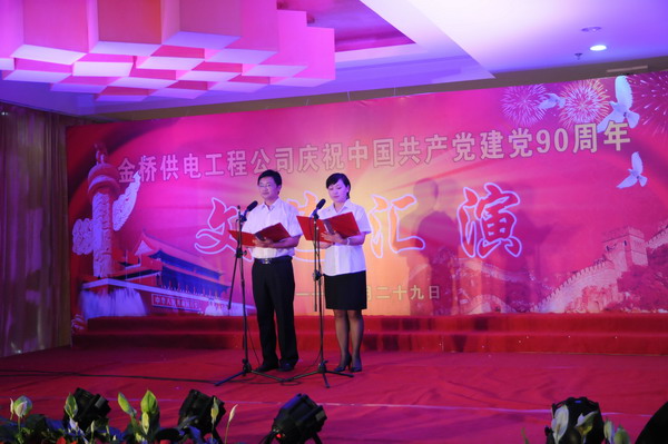 6月29日,公司为庆祝建党90周年,隆重举行文艺汇演。集团公司党委副书记、纪委书记郑宜虎,工会主席戴鸿鸣,有关部门负责人,以及部分离退休老干部应邀出席。 演出节目既有诗朗诵《七月,为党歌唱》、大合唱《共架金桥》、女声独唱《走进新时代》等,又有公司自创、自编、自导的摇滚快板《金桥供电在崛起》、相声《谁聪明》、舞蹈《螃蟹调》等。整个演出大气磅礴,精彩纷呈,掌声不断。(司宣)