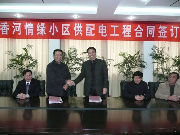 4月2日下午,我公司举行“香河情缘”小区供配电工程签字仪式。公司书记、经理范益宝、副经理徐开金、台南盐场场长陈汝军、徐圩盐场场长刘长兵、副场长郁洪军以及公司和台南盐场有关部门负责人参加了签字仪式。“香河情缘”小区是集团公司盐场职工安居工程。此小区的建成使用,将大大改善台南盐场和徐圩盐场职工居住条件。