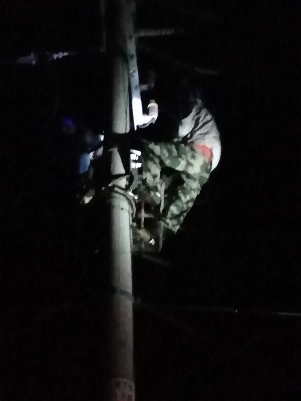 7月15日晚上8点26分,为了保证养殖户正常用电,值班人员正在黄下线养殖支线抢修断路器故障时接到黄沙村十八位居民及淡水鱼塘用户报“警”电话说:“一队变压器高压方引线线路冒火,配电箱断路器跳闸停电”。得到消息后,所值班人员立即通知线路组长余荣欣同志。9点21分恢复养殖支线正常供电后。余荣欣立即组织党员卢明利、安全员王兜柱三名同志,冒着视线差、天气热、蚊虫多恶列环境,赶赴事故现场查明停电原因。到达现场后,已经聚集数十位居民在盼望着………。党员卢明利同志在办理停电、验电、挂接地等程序后登杆仔细检查,发现高压侧套管内导线烧焦粘在一起。(该台变系农网一期工程,变压器、配电实施配置低,居民用户、用电电量不断增加,严重超载运行所致)。在其他同志配合下,重新压接更换导线,经过近3个小时“奋战”全面恢复附河线正常供电。此时全身都湿透了的他们脸上露出胜利的笑容,因为我们是守卫光明的哨兵。(王学忠)