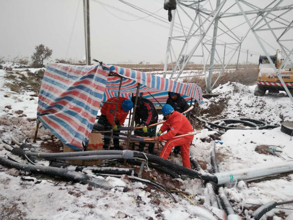 近日,持续的低温大雪天气,港城银装素裹,让我们真切地感受到深冬的寒冷,人们宁可闲在家里,也不愿意外出,但是在公司35kV和风风电的施工现场,工人们正冒着严寒加紧电缆敷设和电缆头制作,全面掀起冬季施工大干热潮。 2018年新年临近,为完成年前的施工节点目标,项目负责人带领员工们冒着大雪严寒奋战在施工一线,不怕雪天的寒冷,他们仍然坚守在岗位上,忘记节假日的休息时间,加班加点施工,员工们干劲十足,精神饱满,全身心投入到紧张的工作中。(电宣)