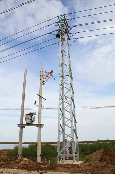 日前,灌西供电所组织职工对二辛线养殖户更换变压器,图为增容现场。(电宣)