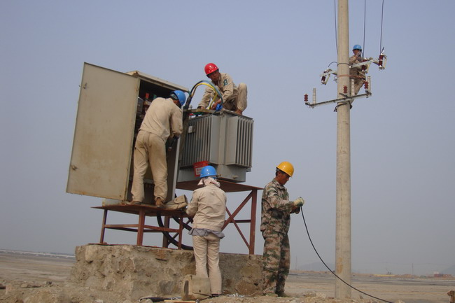 金海一期二次B3区加固地基工程要求在5月10前具备全面抽真空条件。台北供电所承担此项电力工程,需架设10千伏线路2280米,安装19台变压器及配电箱,工程总量170万元。为使工程按时完成,维护供电所的信誉,展示自己的实力,该所细心谋划,调配车辆,拉材备料,认真组织人力抓紧施工。现场施工条件恶劣,乱石堆放,脚下无路,给施工作业带来重重困难。职工作业汗流浃背,吃苦耐劳,无怨无悔。凭着顽强的斗志,认真地坚守的岗位,聚精会神地操作,为连云新城“一年拉框架,两年出形象,三年基本建成”的战略建设,奉献自己的力量。