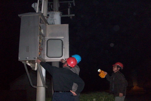 青口供电所进行夜间设备检查