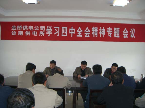 为贯彻落实十七届四中全会精神,进一步推动供电所经济建设。按照公司党委安排,台南供电所先后召开了党员大会和职工大会,传达十七届四中全会精神,并将其作为当前乃至今后指导支部工作的纲领性文件。一是精心部署,提高认识。该所先后召开了党员、职工学习“四中”全会精神专题会议,原原本本学习全会报告并传达了党委书记、总经理范益宝同志在“10.30”公司中层干部会议上的重要讲话,深刻领会全会精神实质与科学内涵,了解和掌握公司的形势和任务,将全体职工思想统一到推动公司和供电所党建及经济工作的目标上来。二是学用结合,推动工作。该所将学习“四中”全会精神与深入学习实践科学发展观相结合,转变思想观念,创新工作方法;与努力推进当前各项中心工作相结合,扎实抓好日常的供用电管理、市场开拓、优质服务、稳定队伍等工作;与深入学习党的方针政策和业务知识相结合,认真探索新形势下党支部工作的新途径、新方法,确保全面完成好今年工作,扎实谋划好明年工作。(刘华)