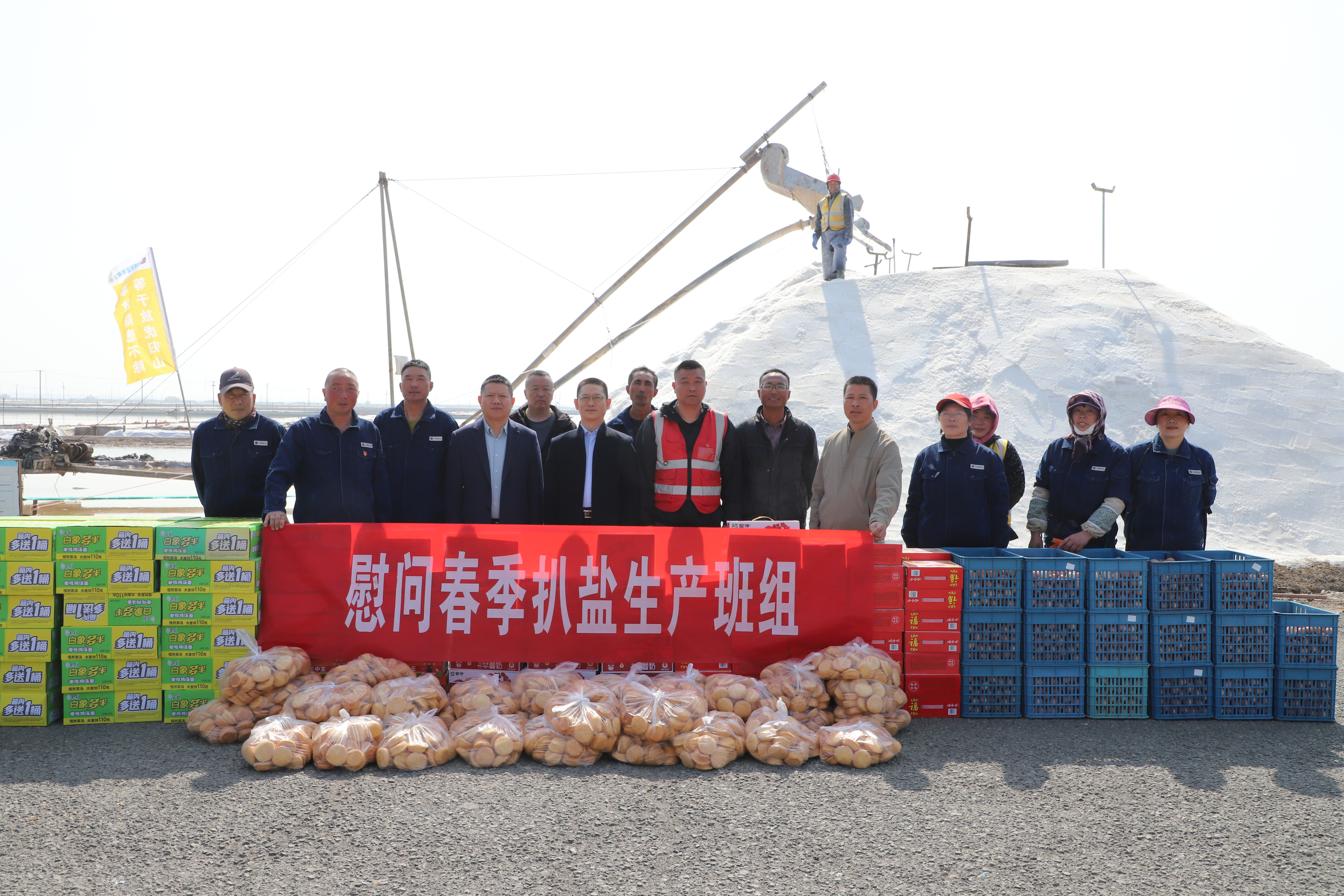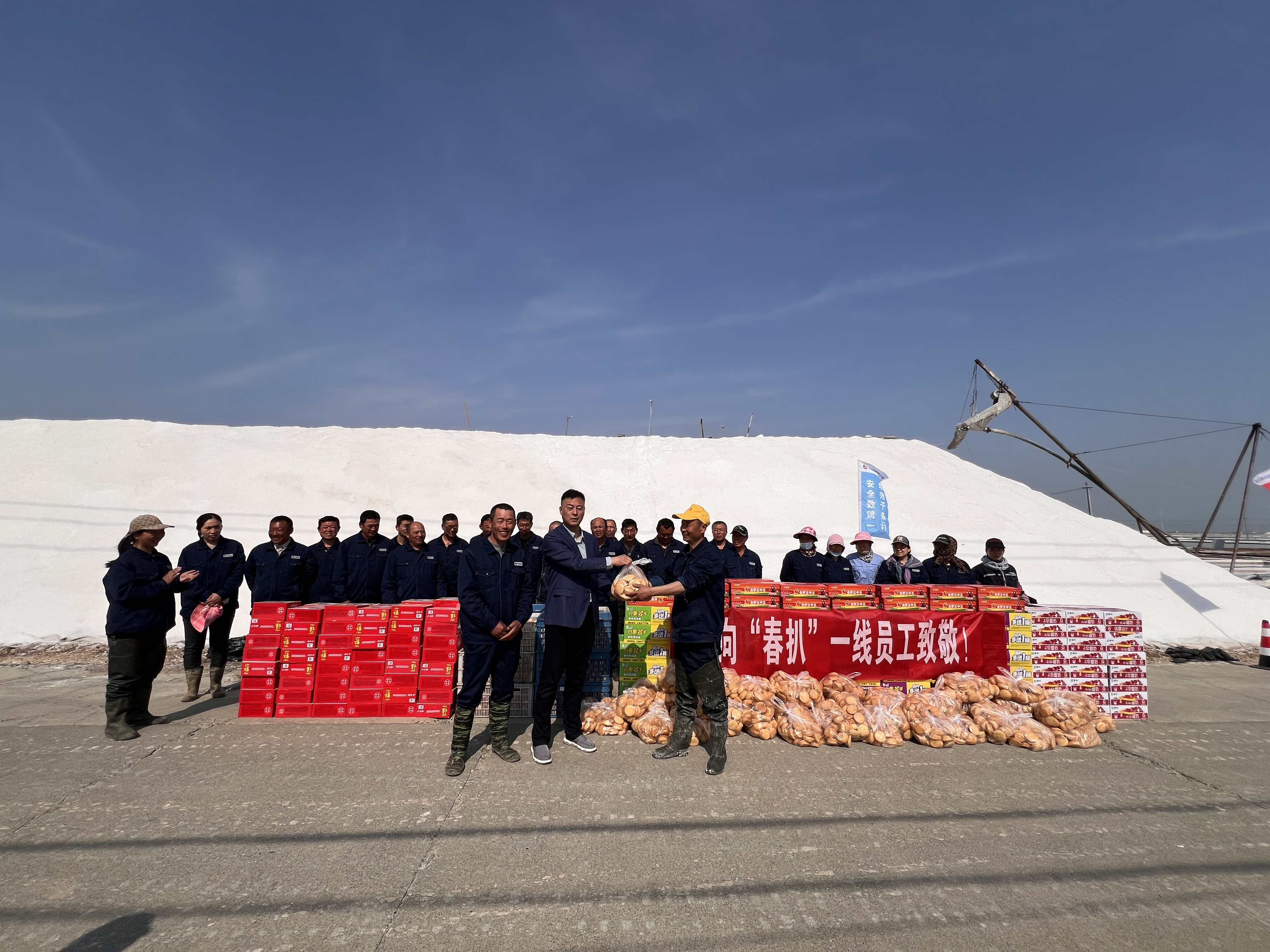 “你们辛苦了,我代表公司来看望大家。”在新河十班与埒南十一班,吴卫平与扒盐现场职工握手问好,感谢他们在过去的一年为日晒制盐公司的原盐生产所付出的辛勤努力,叮嘱他们一定要落实落细扒盐生产措施,增强责任感和警觉性,严格执行各项规章制度,切实保障扒盐期间的安全生产,并送上鸡蛋、八宝粥、方便面、牛奶等物品。
