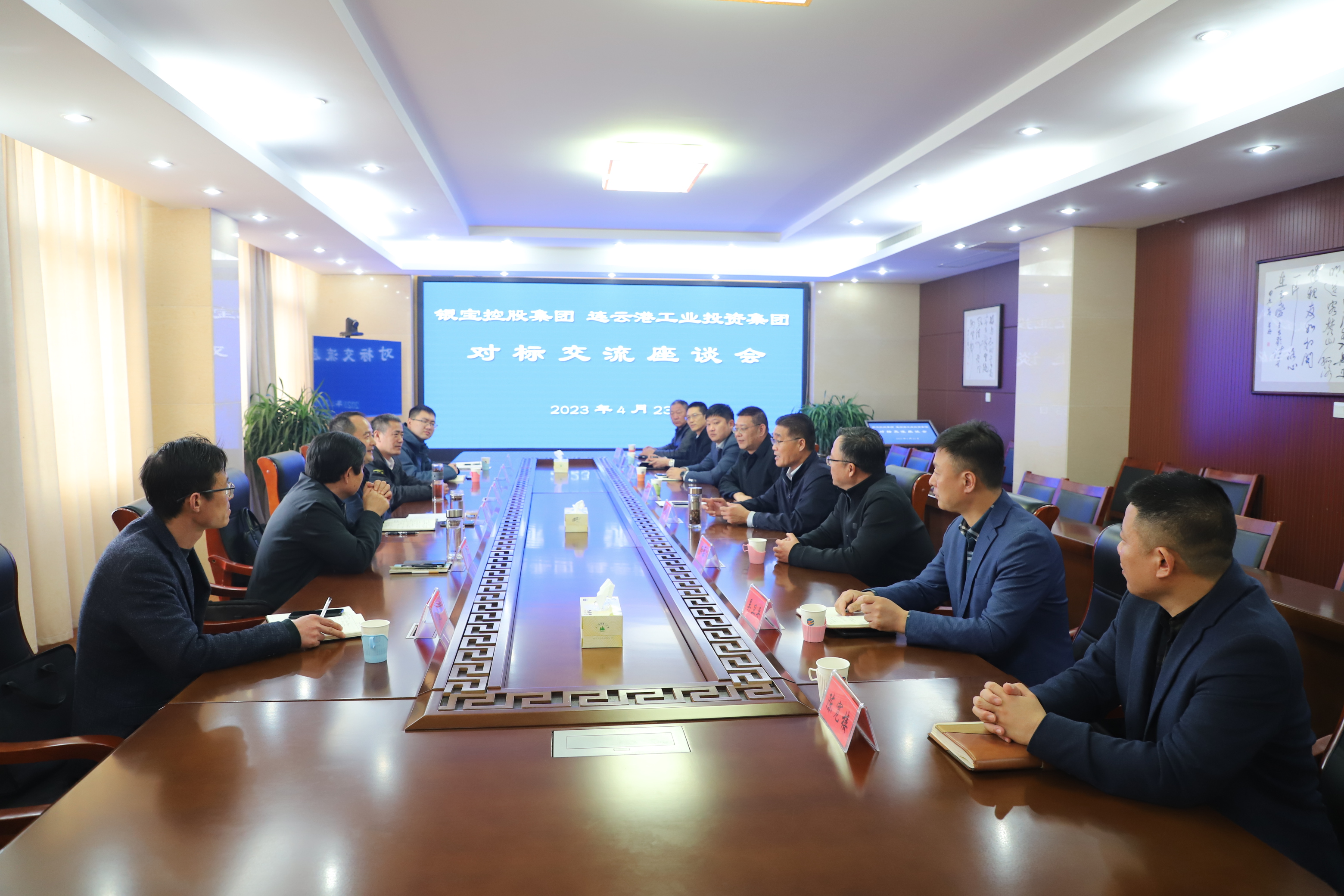 4月23日,银宝控股集团企业运营部部长朱先林,成本控制部部长何玉忠,银宝盐业有限公司党委书记、董事长崔敏等一行来访灌西投资有限公司,就盐产业的转型发展方面开展对标交流座谈。集团公司副总经理刘承志,江苏金桥制盐有限公司党委书记、总经理田磊,灌西投资公司党委书记、董事长孙政权,灌西投资公司总经理吴卫平等参加交流座谈。