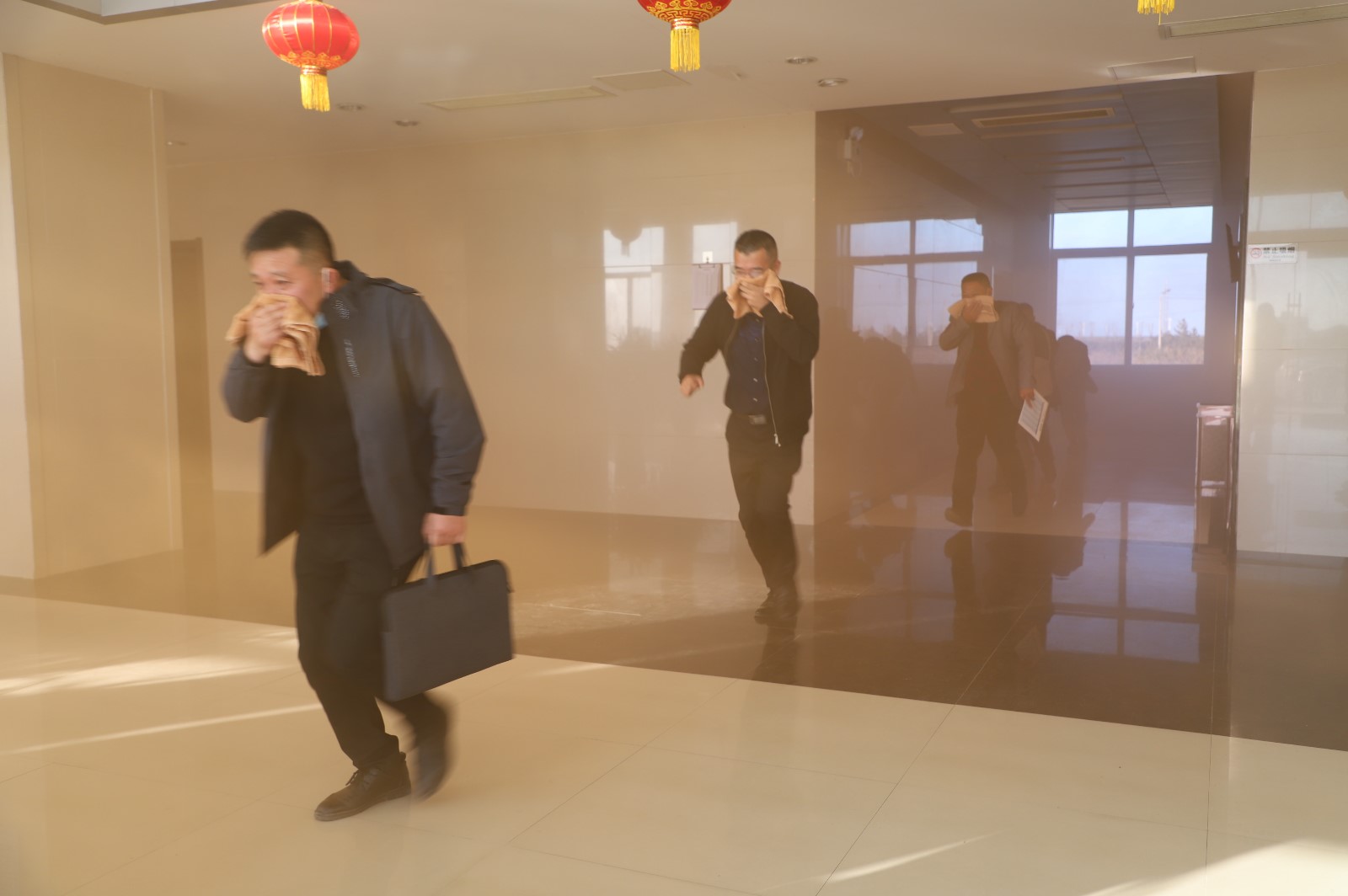 此次实战演练的“突发事件”地点设在机关大楼,所有参训人员按照既定的消防应急预案进行了一次消防安全模拟演练。随着“消防警报声”响起,正在大楼内工作的员工在浓烟中用湿巾捂嘴、弯腰、靠墙从楼梯道口迅速有序地疏散、撤离,在假定火灾发生条件下进行逃生自救实战演练。救援组、疏散组、后勤组各组成员各负其职,配合有序,随后,大家在楼前广场上进行了灭火器实战操作训练。