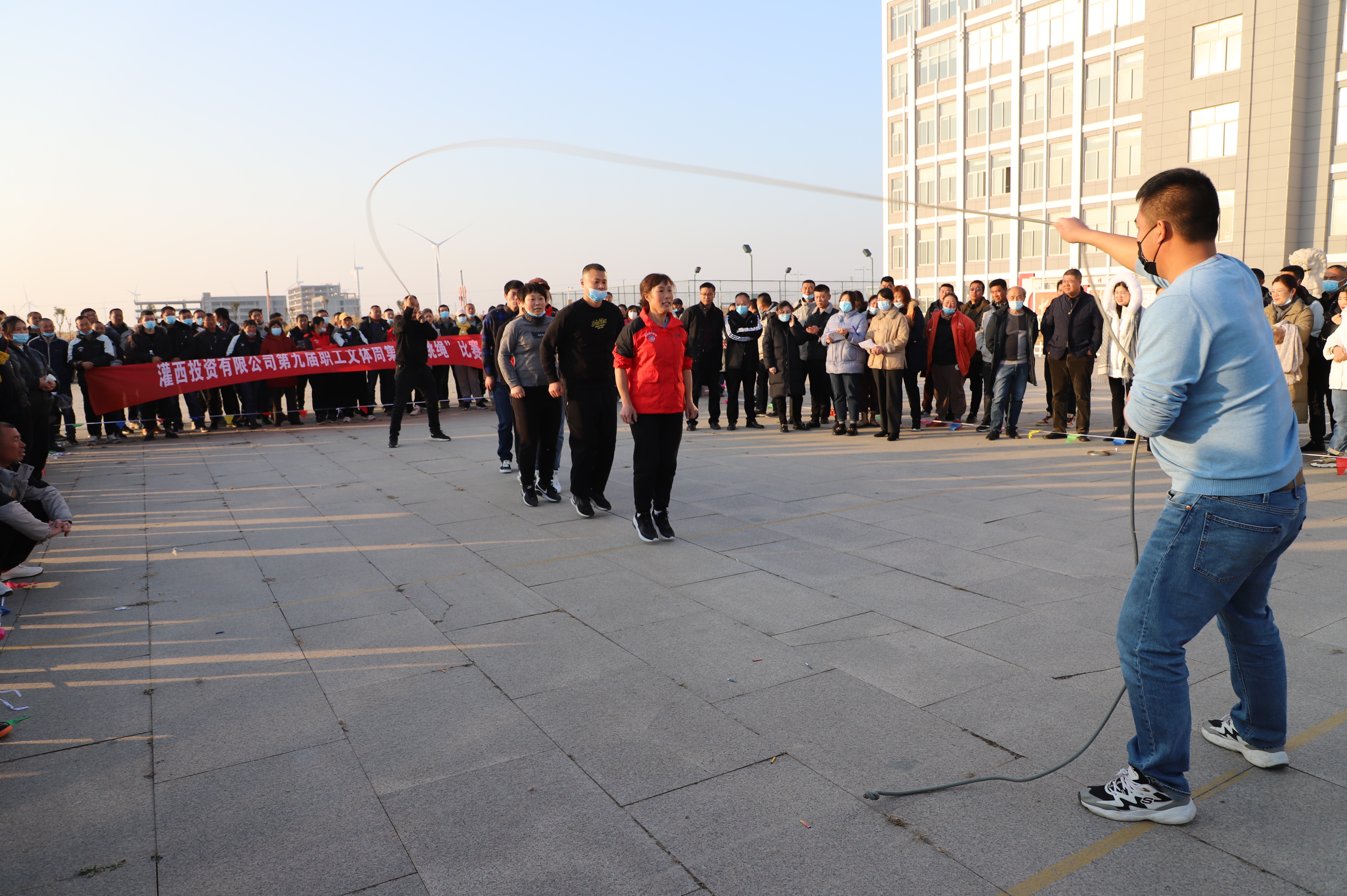 随后进行跳绳比赛,来自南翼、新河、埒南等10支参赛队伍逐一上台比赛,观众随着场上比赛队员跳绳的节奏,不约而同地打着节拍、数着数,最终埒南制盐公司代表队凭借刻苦训练与创新——参赛队员手牵手共同协作,夺得第一名,新河制盐公司、宵洋物流公司、生产服务中心分获二至四名。(西宣)