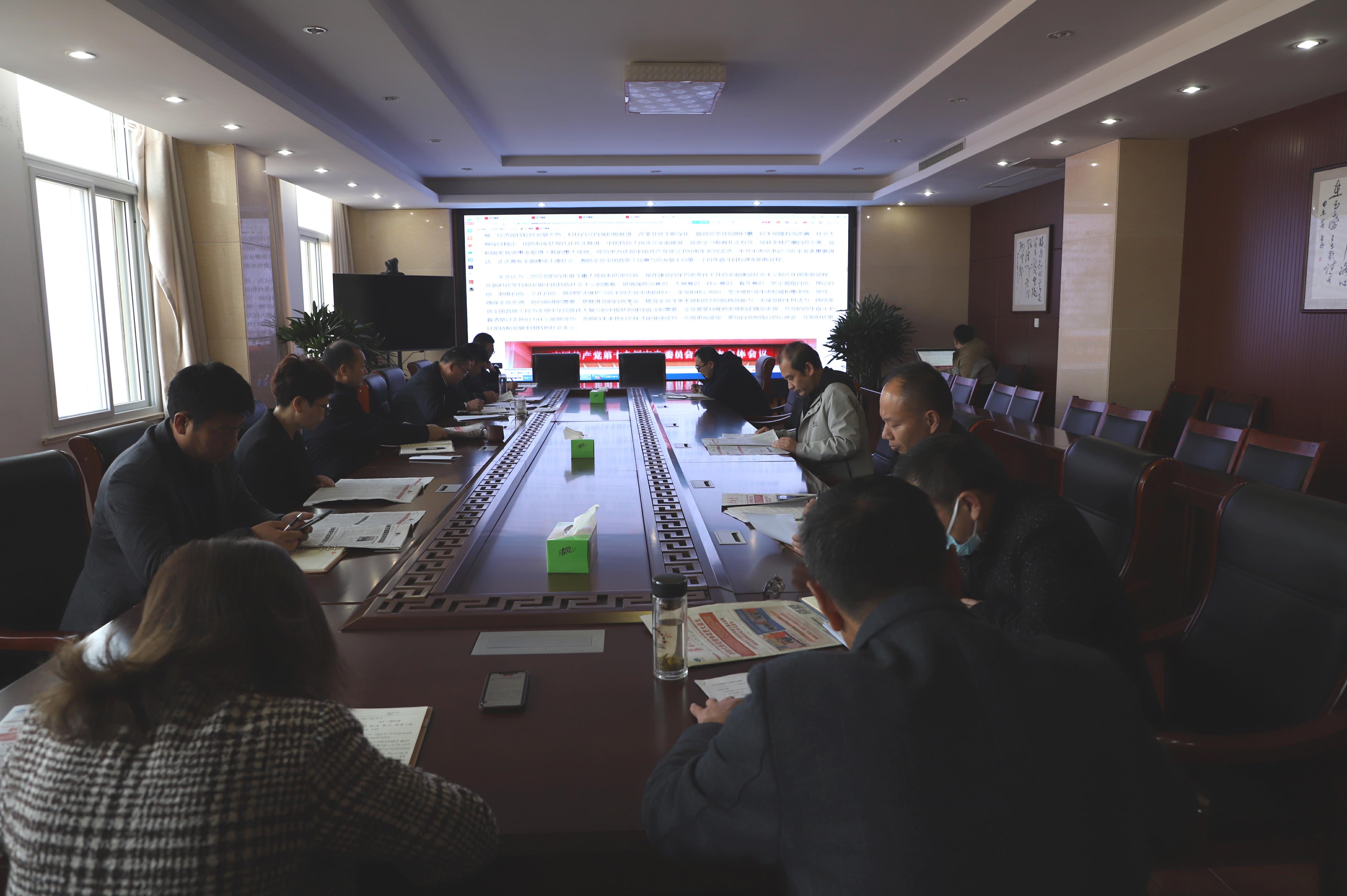 1119日下午,灌西投资公司党委召开十一月份中心组学习会,深入学习贯彻党的十九届六中全会精神。公司领导班子全体成员、党群部门负责人等参加学习。