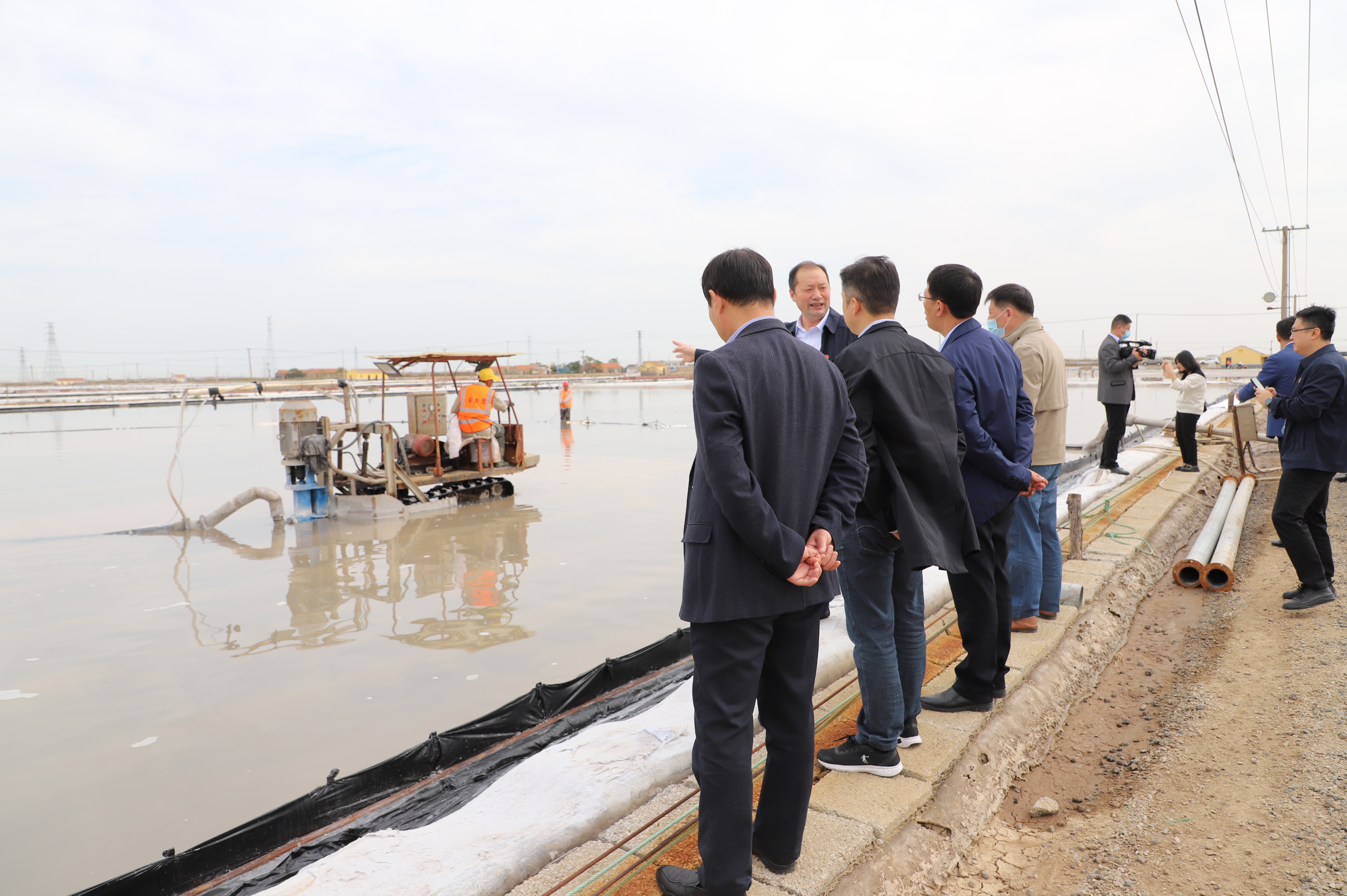 观摩团一行首先到新河制盐分公司的0班,现场参观了扒盐生产工作情景和食用盐系列产品展示,了解日晒制盐概况和制盐工艺流程。在新河制盐分公司的八班,参观了班组活动室,观摩盐池机械活碴实操演练,听取公司的“一星三制”产改工作和“三组联建”等党建工作介绍。在新河制盐公公司劳模创新工作室党支部,参观了支部阵地建设情况,观看了《“四+模式”助推劳模创新工作室党支部“双创双提升”》党建带工建创建纪实专题片,在金蓝领技术创新基地观摩了解三代扒盐机组技术革新历程、新式活碴机械推广应用等创新成果介绍。观摩团一路走、一路看,每到一处,观摩团人员都驻足观看,看生产、听介绍,详细询问生产情况,并提出建议和意见。