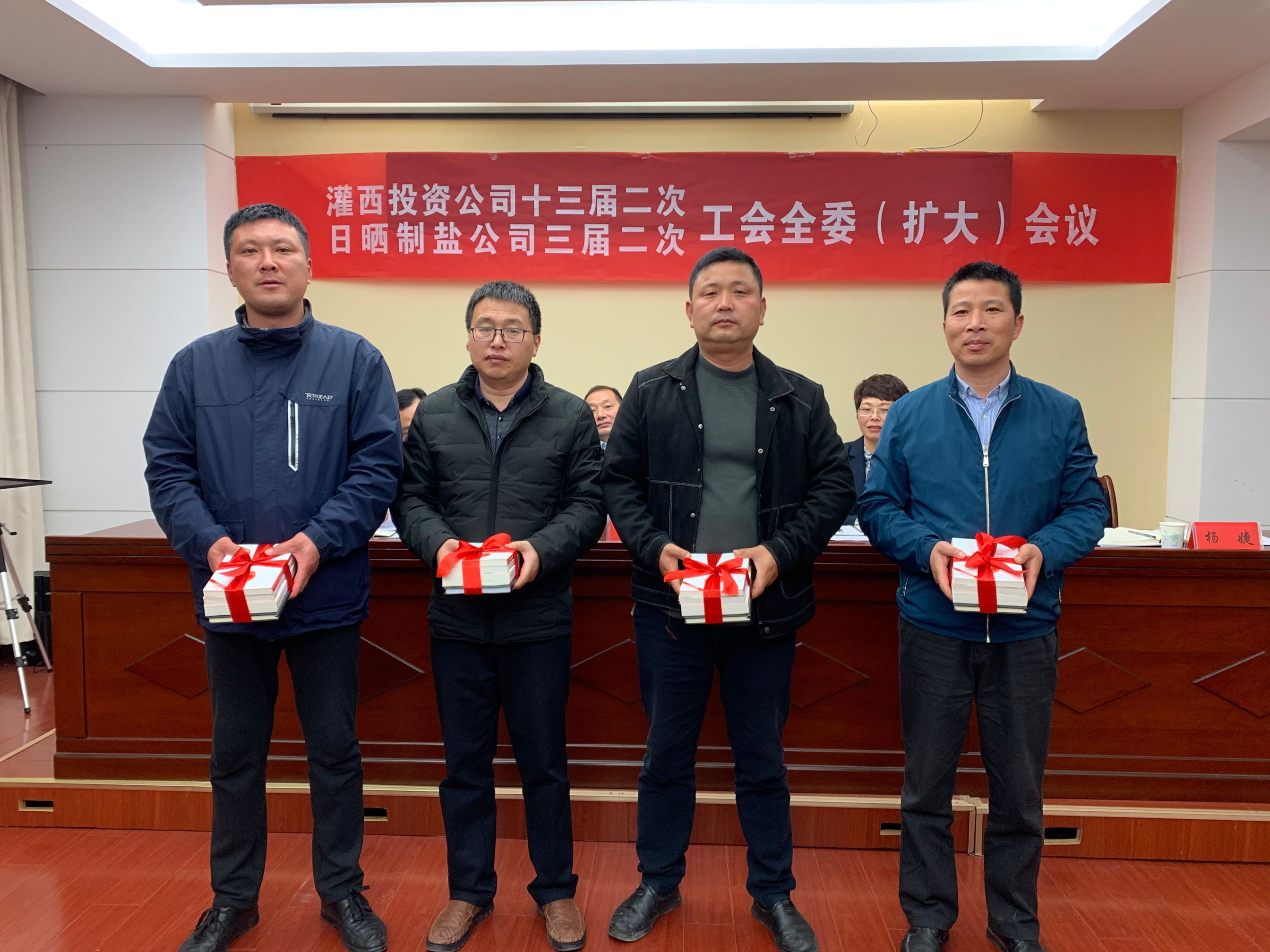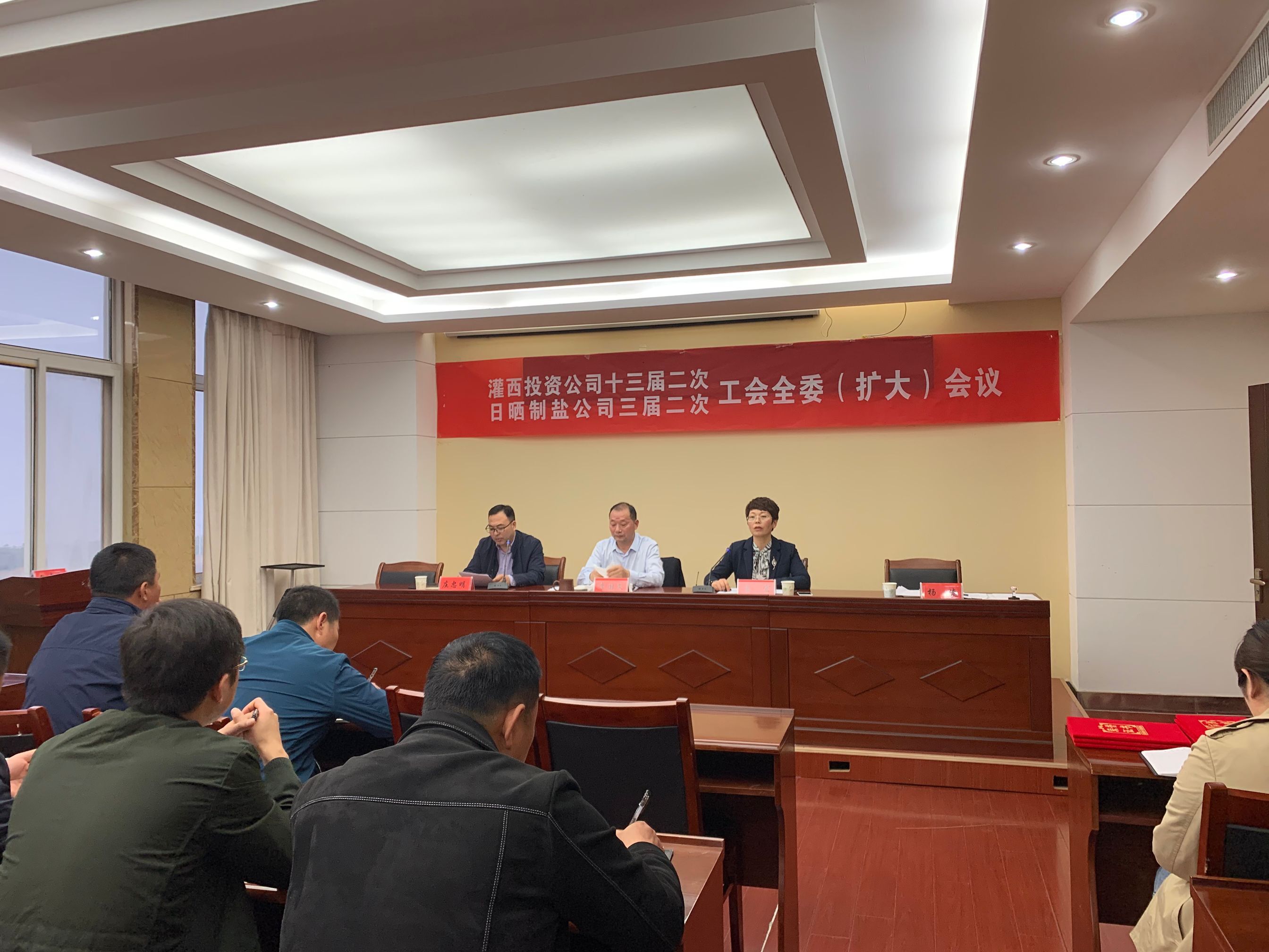 4月28日,灌西投资公司召开十三届二次、日晒制盐公司三届二次工会全委扩大会议,公司党委书记、董事长、总经理李国文出席会议并讲话,工会主席王宏作工作报告。工会委员会全体委员,各单位工会主席、女工委主任参加会议。