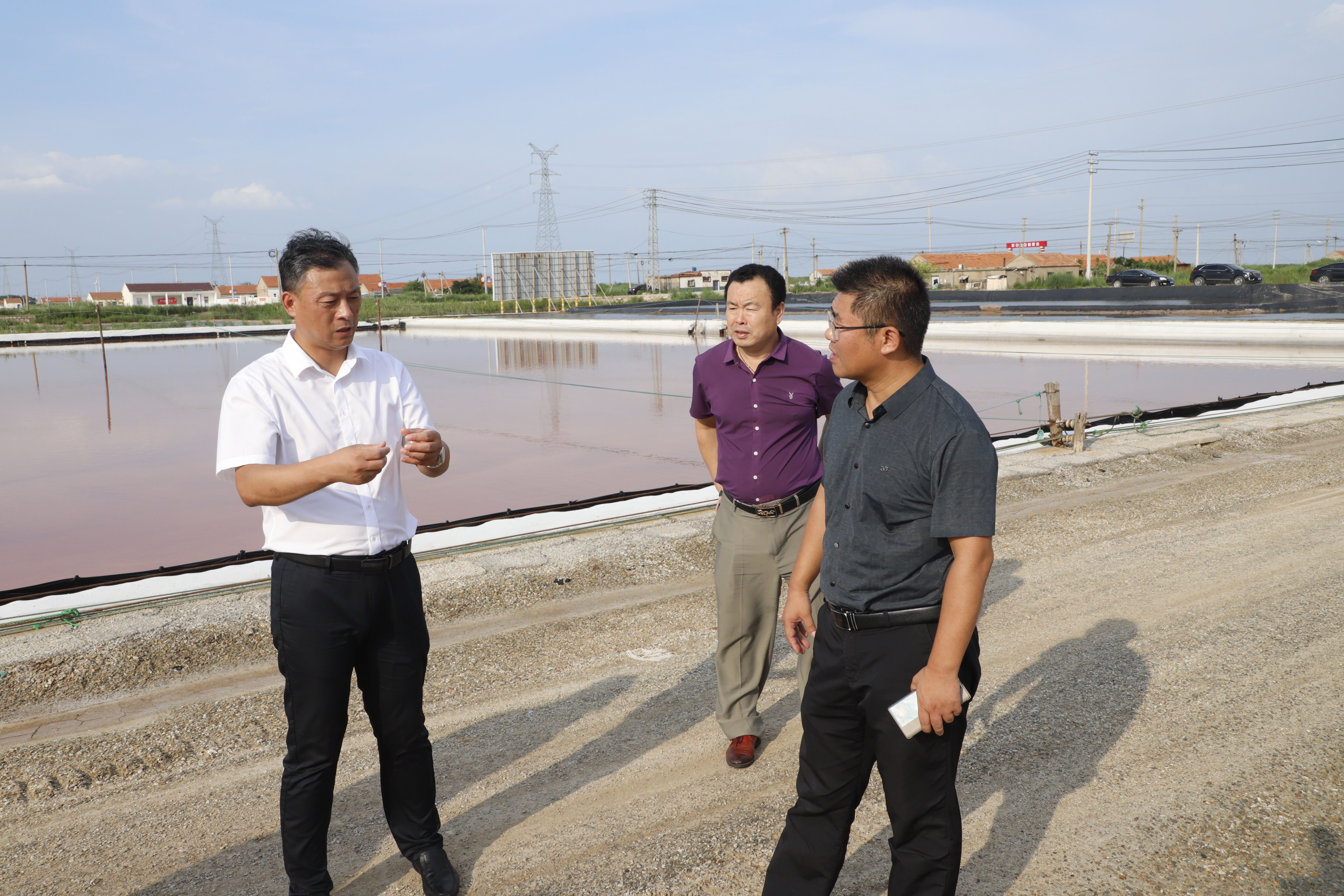 在新河分公司8班生产滩头,省劳模安树林向王尽美研究会一行讲解了制盐过程,以及基层班组党小组活动开展情况。日晒制盐新河制盐分公司8班,这是一个建在一线滩头的基层党组织,是一个特别能吃苦的团队,在十分简陋的环境下,活学活用,将党建活动与盐业生产、劳模创新融为一体,充分发挥了基层党组织的战斗堡垒和先锋模范作用,所在班组被市总工会授予劳模创新班组,班组长祝星星获连云港市劳动模范称号。