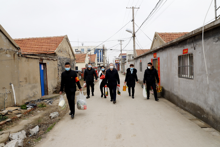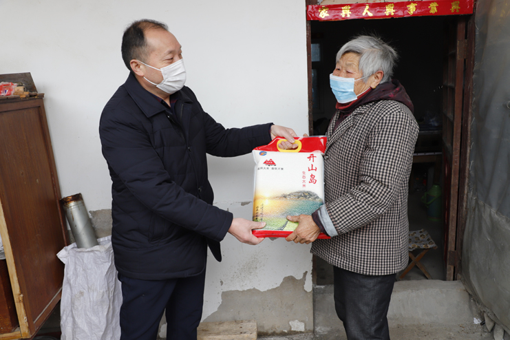 “您好,我们代表灌西领导班子来看望您来了!”2月21日上午9点,家住灌西中二圩社区的李正荣老人应声开了门。灌西投资公司领导班子成员李国文、王宏一行拎着米、面、油、鸡蛋、新鲜蔬菜、瓜果和猪肉看望社区孤寡老人和公司困难职工。李正荣老人今年78岁,常年独居,买菜等生活琐事基本由自己料理,疫情发生以来,她一直安心在家。因防控要求及自己身体年老多病,出门买菜成了难题。
