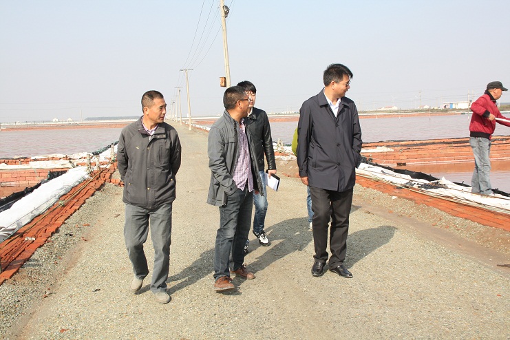 10月27日上午,王德志董事长深入日晒制盐生产一线,就目前的原盐生产的重点问题、一线生产现状等进行了调研,新河分公司、生产服务中心相关人员陪同调研。
