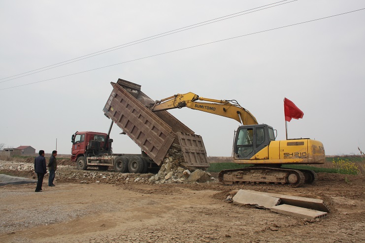 4月5日,在埒南制盐分公司十四班运盐路施工现场,我们看到大型工程车正在将一车车石料倾倒在路基上,一台挖掘机正忙于将运送来的土夹石整平。据了解,此次铺设的运盐道路主要是为了解决埒南制盐分公司十四、十五两个班的原盐运输问题。由于临港产业区已经建成的石化路最北端只能够到达十三班,而原有的运盐道路又无法满足生产需求,交通不便已经严重影响了这两个班原盐运输工作。为了解决这一难题,公司在经过前期调研,并报集团公司批准后,于近日开始实施道路建设工程。