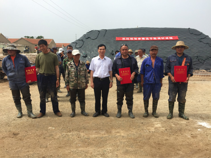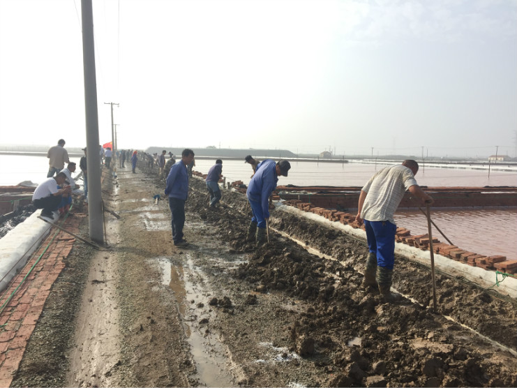 比赛开始前,生产服务公司经理王绪前首先就天沟建设要求、评分标准等事项进行了现场说明。7点20分,随着裁判员的一声令下,比赛正式开始。参赛选手们按照赛前抓阄序号,迅速投入到比赛中。赛场上,每一组选手都分工明确,浇水、翻泥、踩实、做埝、整平一气呵成,大家都表现的极为熟练,充分展示了参赛选手扎实的基本功。比赛中,三位裁判在比赛场地来回巡查,认真记录每一组参赛选手的劳动过程,力求做到公平、公正。9点20分,随着最后一组选手的工作完成,比赛正式结束。随即,三位裁判又根据比赛过程中的记录情况结合最终工程质量对每一参赛小组进行综合评分。最终,来自埒南制盐分公司的章保卫、高明成荣获比赛第一名;江海兵、张春连以及尹步松、汪礼兵两组选手荣获第二名;新河制盐分公司朱明、戴继明,郁雷敏、李正军,杨春旭、史春海三组选手荣获第三名。
