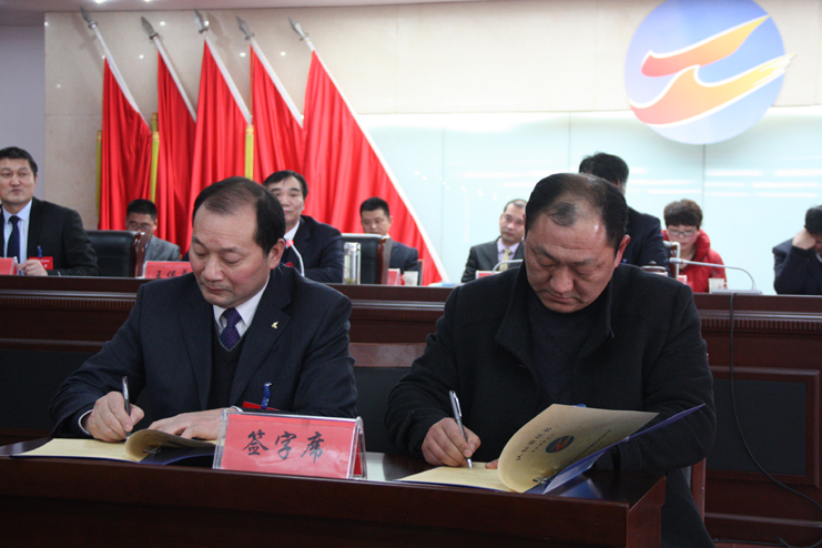 会上,公司党委书记、董事长王德志作党委工作报告,总经理李国文作总经理工作报告,纪委书记王保平作纪委工作报告。会议审议并通过了有关方案,签订了《2017年度集体合同》、《2017年目标责任认标书》;递交了《党风廉政建设责任书》;埒南、新河、人力资源部、市场销售部等十个单位和部门负责人进行了打擂表态发言。大会还对2016年度先进单位、先进部门、先进班组、廉洁之星以及先进个人进行了表彰。