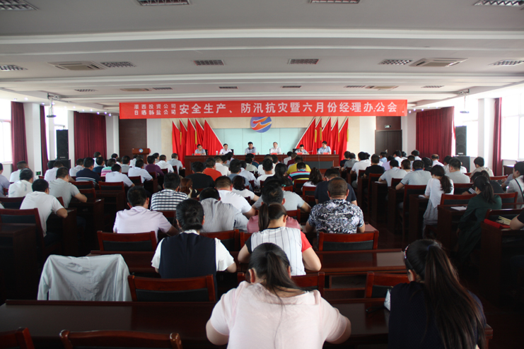 6月2日,我公司在机关五楼会议室召开安全生产、防汛抗灾暨六月份经理办公会,贯彻落实集团公司防汛工作会议精神,分析了公司当前安全生产和防汛抗灾面临的形势,安排部署了下一步全公司安全生产和防汛抗灾工作,公司党委书记、董事长王德志出席会议并讲话,党委副书记、总经理李国文对小结回顾了两大公司1-5月份的经济运营情况,对六月份的经济工作作了详细部署。会议由党委副书记、纪委书记、工会主席王保平主持,党委委员、副总经理古浩光、张学峰、徐近军以及全体管理人员参加会议。
