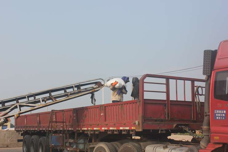 最后我们来到了筑包基地,流水线上工人分工明确,有的负责装袋,有的负责封口,有的负责将其放上传送带。传送带的另一端,两名工人站在货车上,轮流将传送上来的盐包整齐的摆放在车厢里。