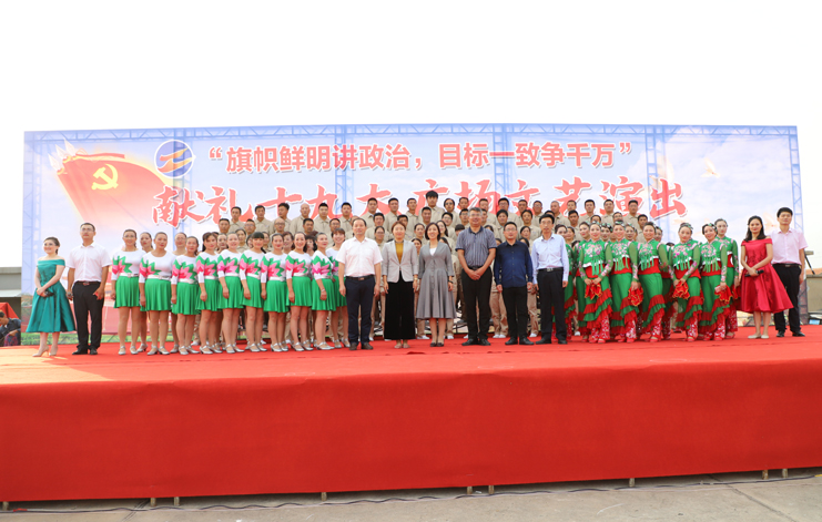 “没有共产党就没有新中国……”14点30分,演出在激昂的《没有共产党就没有新中国》大合唱中拉开序幕。并不晴朗的天空丝毫没有阻碍职工们观看演出的热情,“今天是你的生日,我的中国,清晨我放飞一群白鸽……”合唱团的一曲《今天是你的生日》唱出了灌西人“旗帜鲜明讲政治,实现综合利润一千万”的政治担当。演出共分为旗帜鲜明讲政治、撸起袖子加油干、魅力灌西展新篇三个乐章,《美丽的心情》沁人心脾,仿佛荡漾陶醉在歌声里。精彩的魔术、杂技赢得了现场观众喝彩声和多次掌声。《东北搞笑二人转》乐的大家笑声开怀,前仰后合。配乐诗朗诵《魅力灌西梦》,向大家展示了灌西将在“十三五”末奋力实现“经济强”、“职工富”、“环境美”、“素质高”的“强富美高”“魅力灌西”的梦想。广场舞《撸起袖子加油干》、《张灯结彩》更是生动体现了灌西人民热爱生活、积极向上的精神面貌,让观众们看得津津有味。