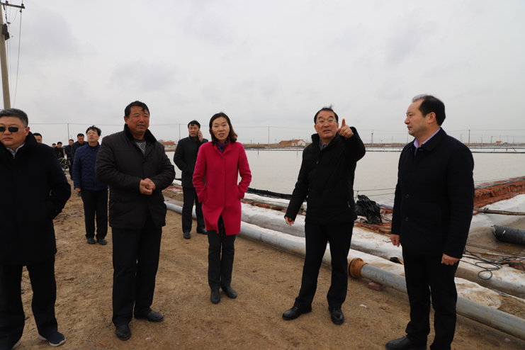 胡建明总经理一行分别到原钙液复晒区养殖池塘改造施工现场和新河制盐分公司五班的扒盐现场进行实地调研,详细了解工程的施工情况和日晒制盐公司的生产情况。在原钙液复晒区,只见彩旗招展,几台挖掘机正在紧张施工之中,对滩地进行养殖池塘改造,工程施工人员抢时间,抓进度,争取在养殖旺季来临之时,完成工程施工投入养殖生产。日晒制盐公司目前已经出动五台扒盐机组投入到春季扒盐工作中来,预计上半年将完成25万吨的扒盐任务。随后在机关三楼会议室召开流动办公会,投资公司董事长李国文对灌西投资公司和日晒制盐公司的生产经营情况进行了汇报。他表示,2018年,灌西投资公司将积极迎接挑战,以“三超两增一确保”为工作目标,产盐58万吨,实现综合利润翻一番工作任务而努力奋斗。同时也提出,公司当前面临原料矿卤要涨价、原盐一线员工年龄老化、职工小区房产证协调办理等诸多发展难题,希望集团公司领导给予高度重视。集团公司领导相继发言,现场办公,针对各类问题分别进行了研讨,提出建议,解决问题。