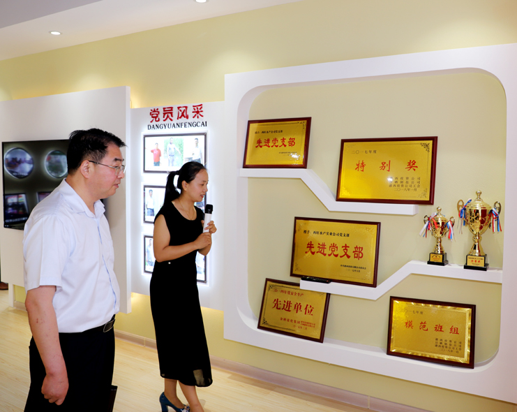 7月12日, 由集团党群工作部、徐圩、金桥制盐、氨纶、利海等单位组成的党建工作调研组在戴鸿鸣书记的带领下,来灌西公司进行年中党建工作互查调研。投资公司党委书记、董事长、总经理李国文,纪委书记、工会主席王宏等陪同调研。